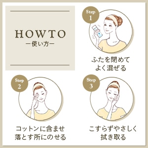 Kết cấu của sản phẩm gồm 2 lớp (dầu và dẫn xuất lotion) được hòa trộn vào nhau sau khi lắc đều. Phần dầu sẽ nhanh chóng hòa tan lớp trang điểm, phần dẫn xuất lotion bao lấy các phân tử dầu để nó dễ dàng được lau đi theo bông mà không bị dính lại trên da.